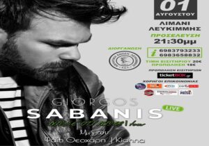 Ο Γιώργος Σαμπάνης live στο λιμάνι της Λευκίμμης – Παρασκευή 1η Αυγούστου Η Α.Ε. Λευκίμμης παρουσιάζει μία μεγάλη καλοκαιρινή συναυλία με τον αγαπημένο καλλιτέχνη Γιώργο Σαμπάνη, την Παρασκευή 1η Αυγούστου,…