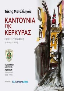Έκθεση Ζωγραφικής | 19 Νοεμβρίου – 3 Δεκεμβρίου 2025 Πολεμικό Μουσείο Αθηνών | Καθημερινά 10:00–17:00 Η νέα έκθεση του Κερκυραίου ζωγράφου Τάκη Μεταλληνού παρουσιάζει τα «Καντούνια της Κέρκυρας», μέσα…