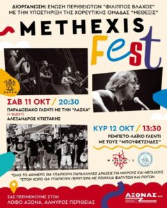🎉 Η Ένωση Περιθειωτών «Φίλιππος Βλάχος», με την υποστήριξη της χορευτικής ομάδας «Μεθέξις», διοργανώνουν το METHExis_Fest! 🎶💃 Το φεστιβάλ αυτό όπως περιγράφει και η ετυμολογία του ονόματός του (μέθεξη: ψυχική…