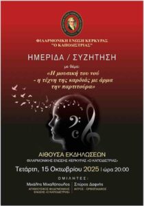 🎵 Ημερίδα / Συζήτηση «Η μουσική του νου – η τέχνη της καρδιάς με άρμα την παρτιτούρα» Η Φιλαρμονική Ένωση Κέρκυρας «Ο Καποδίστριας» σας προσκαλεί σε μια ιδιαίτερη Ημερίδα…