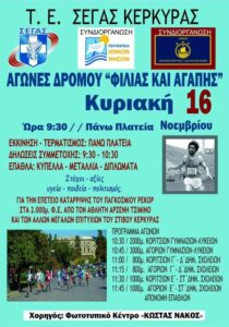 🏃♂️ Αγώνες Δρόμου “Φιλίας και Αγάπης” – Κυριακή 16/11 Η Τ.Ε. ΣΕΓΑΣ Κέρκυρας διοργανώνει τους καθιερωμένους Αγώνες Δρόμου «Φιλίας και Αγάπης», μια όμορφη αθλητική γιορτή που προάγει: ✨ Υγεία…